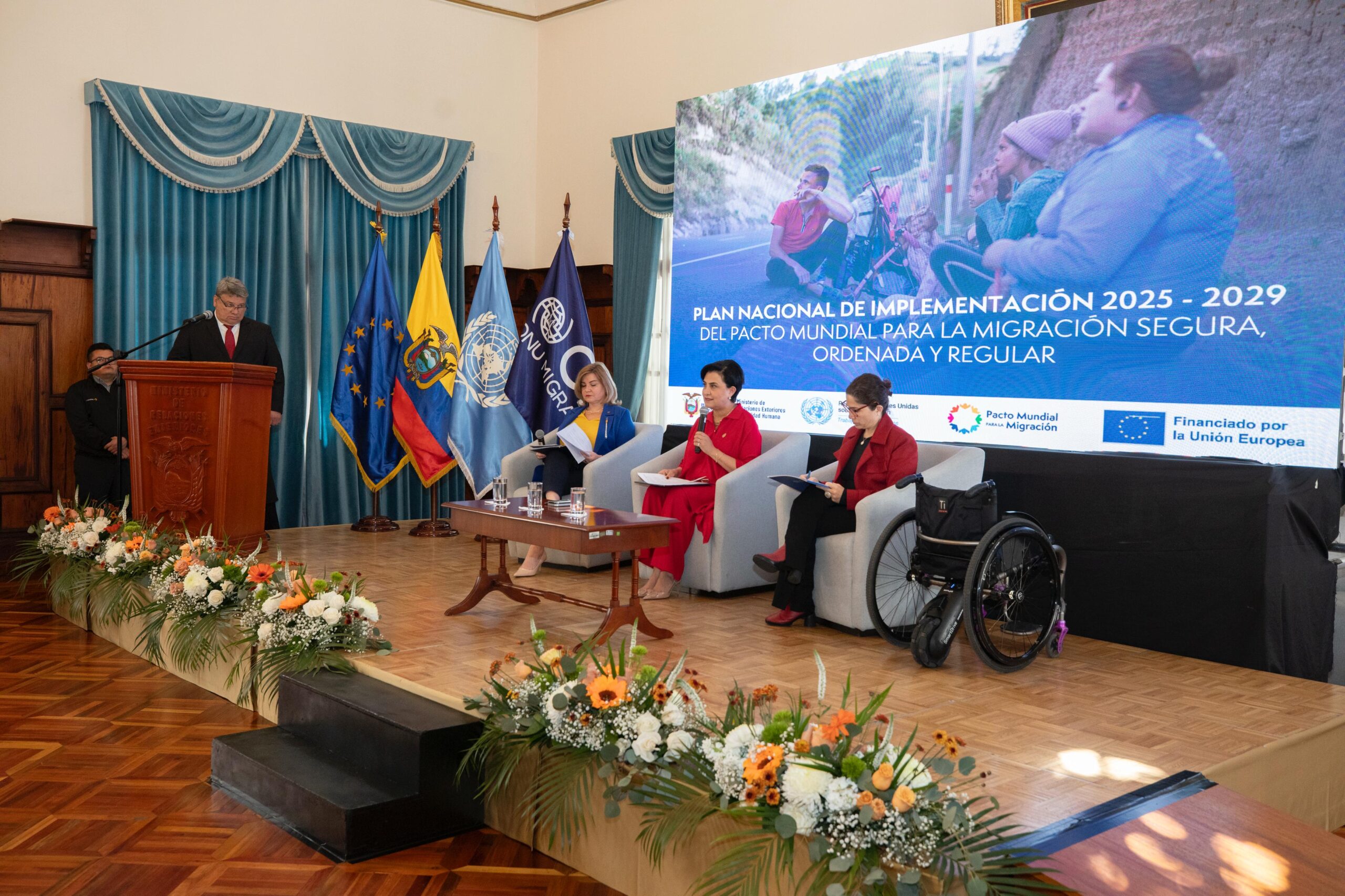 En un acto oficial en los salones del Palacio de Najas, el Ministerio de Relaciones Exteriores y Movilidad Humana y la Organización Internacional para las Migraciones, presentaron el Plan Nacional de Implementación del Pacto Mundial para una Migración Segura, Ordenada y Regular en el Ecuador 2025-2029, instrumento que guiará las acciones del Gobierno Nacional y fortalecerá las alianzas y los esfuerzos para mejorar la gobernanza migratoria del país y la lucha contra la migración irregular.